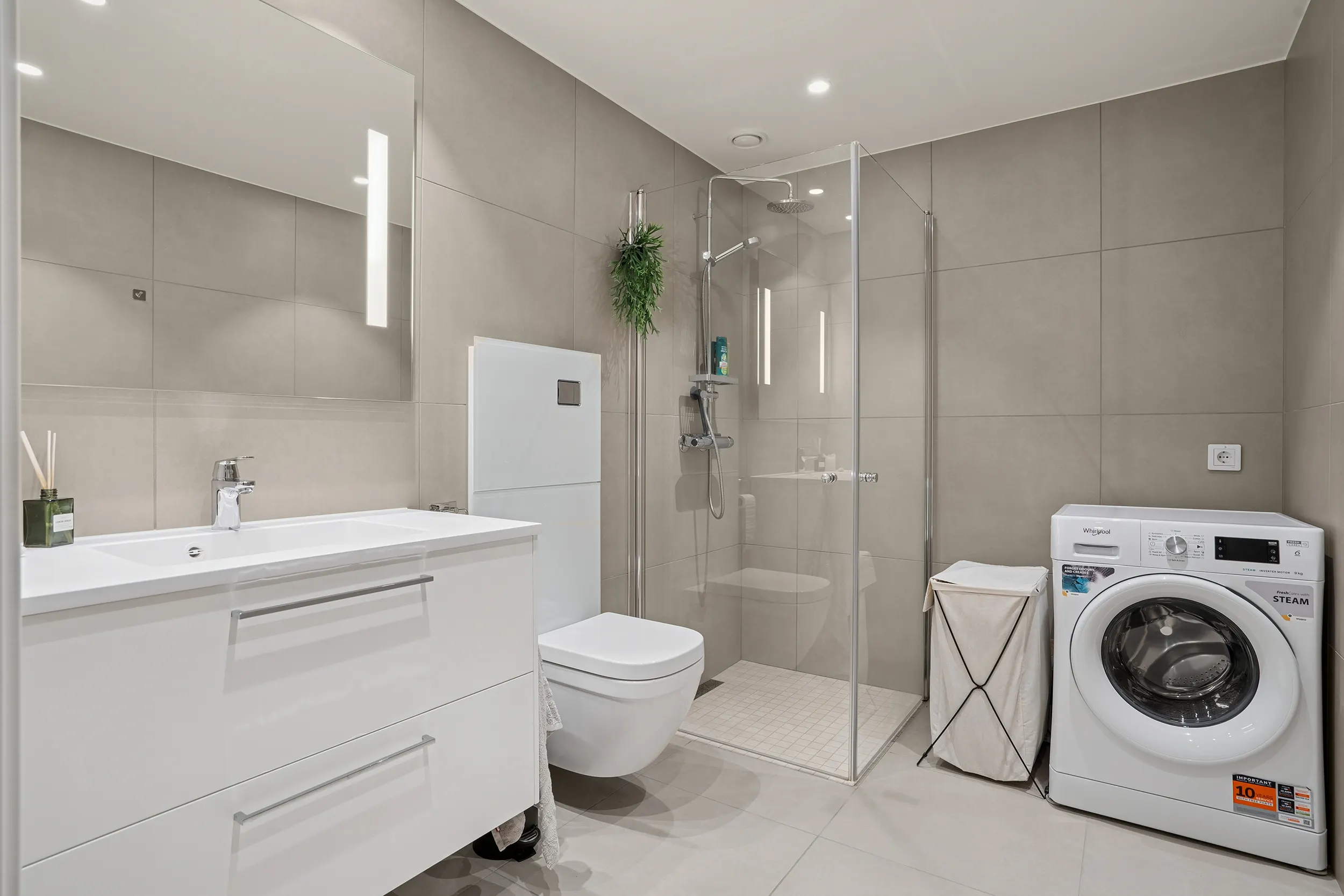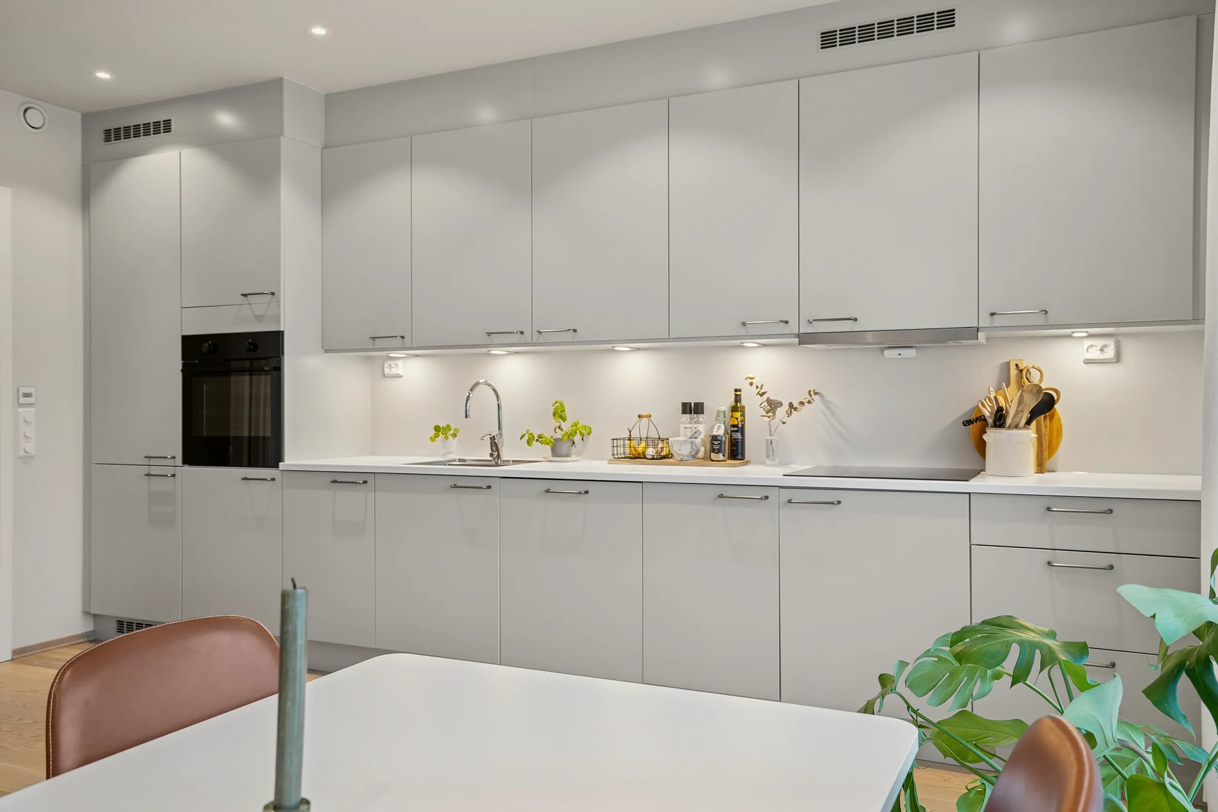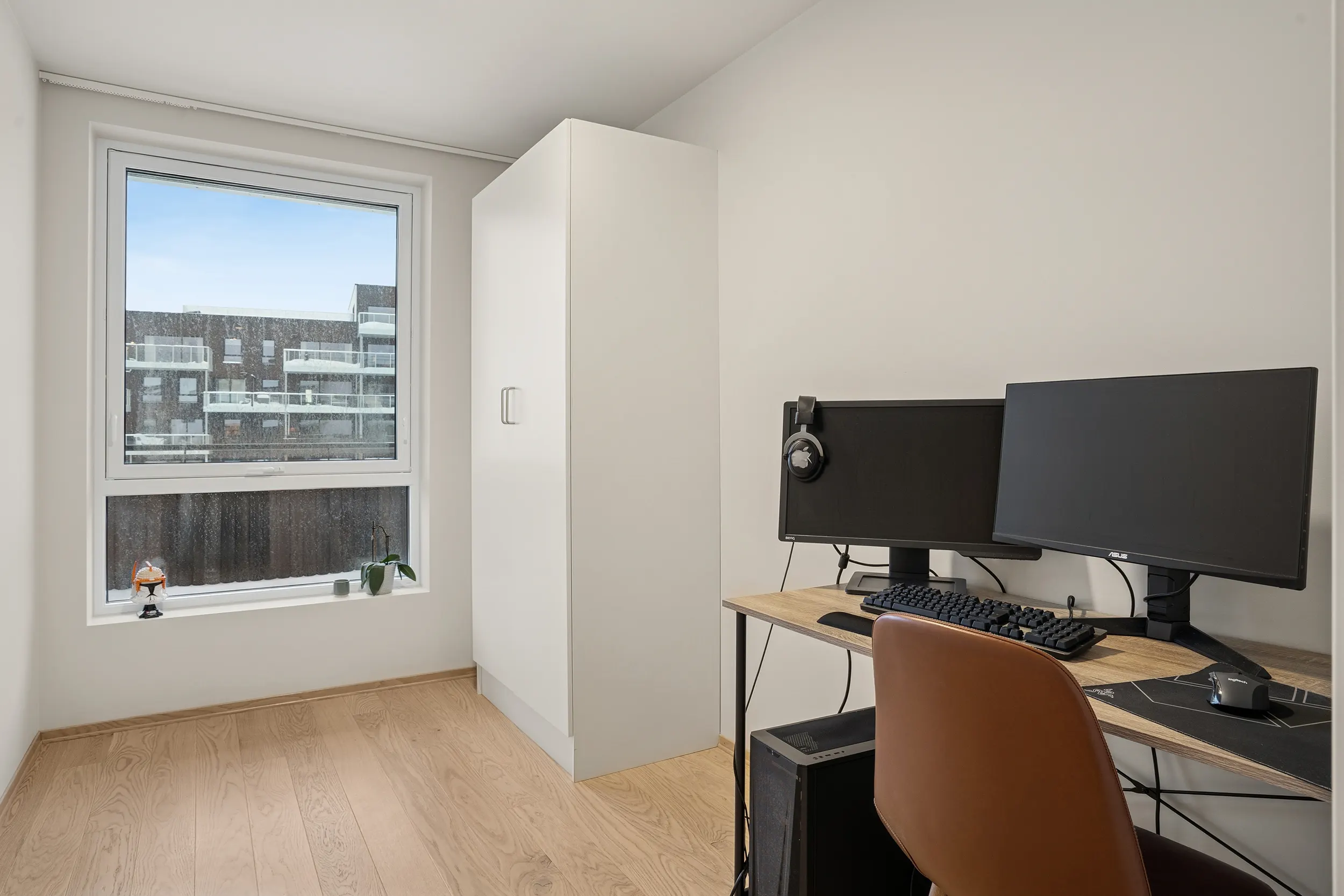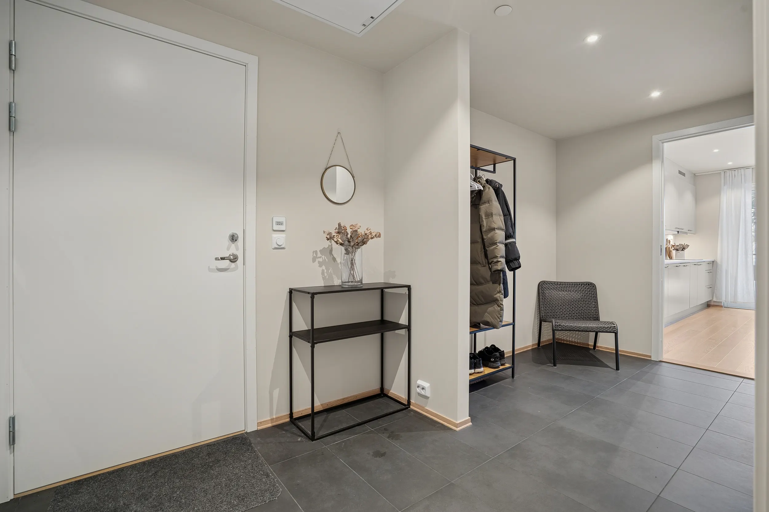 Her får du en moderne bolig i andre etasje med gode utearealer, inkludert en sørvendt og en nordvendt balkong. Leiligheten har romslige soverom, bad, walk-in garderobe og en åpen stue- og kjøkkenløsning. Kjøkkenet er levert av Tromsøs egen kjøkkenprodusent, Nova, modell Tromsdalstinden, med stilrent design og god funksjonalitet.