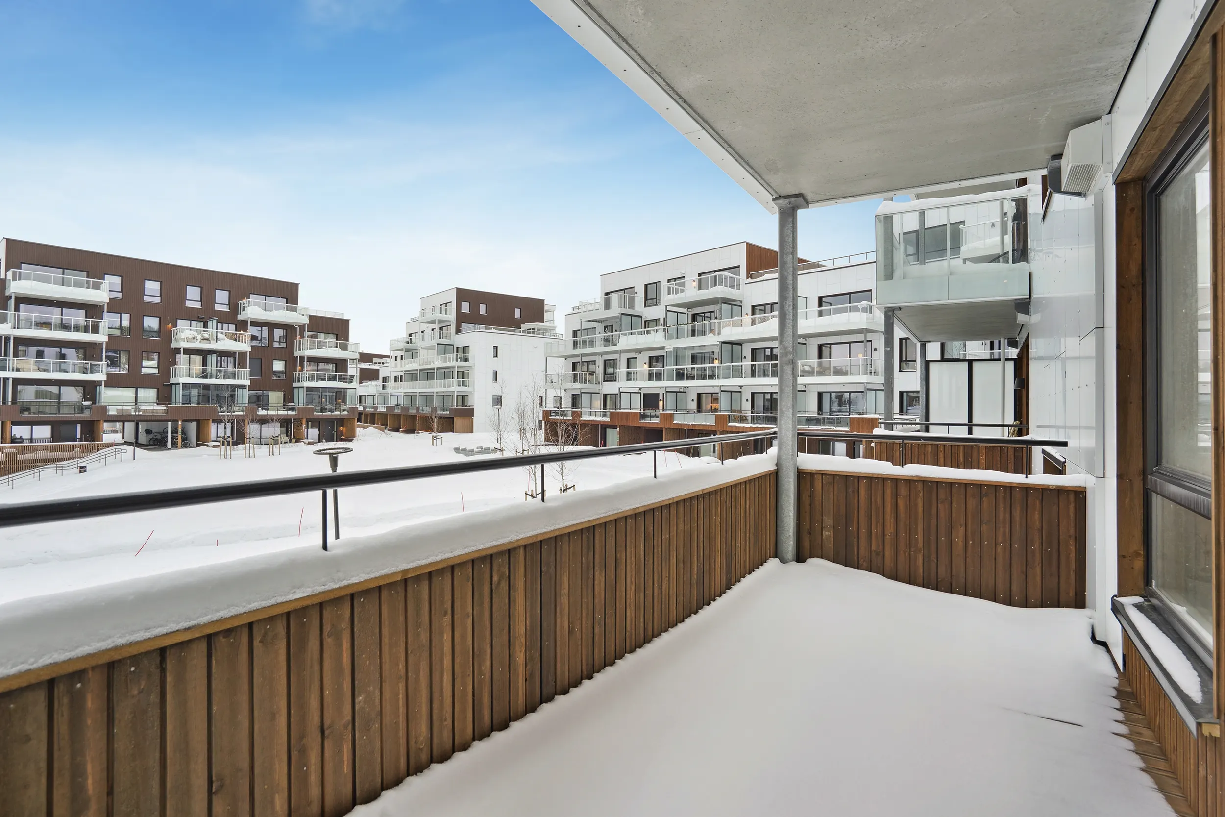 Området er etablert og naboene er på plass. Leilighetene ligger i første og andre etasje med begrenset utsikt, men romslige planløsninger, innglassede balkonger og direkte atkomst. Garasjeplass kan kjøpes separat for kr 300 000,–. Alle leiligheter inkluderer sportsbod.
